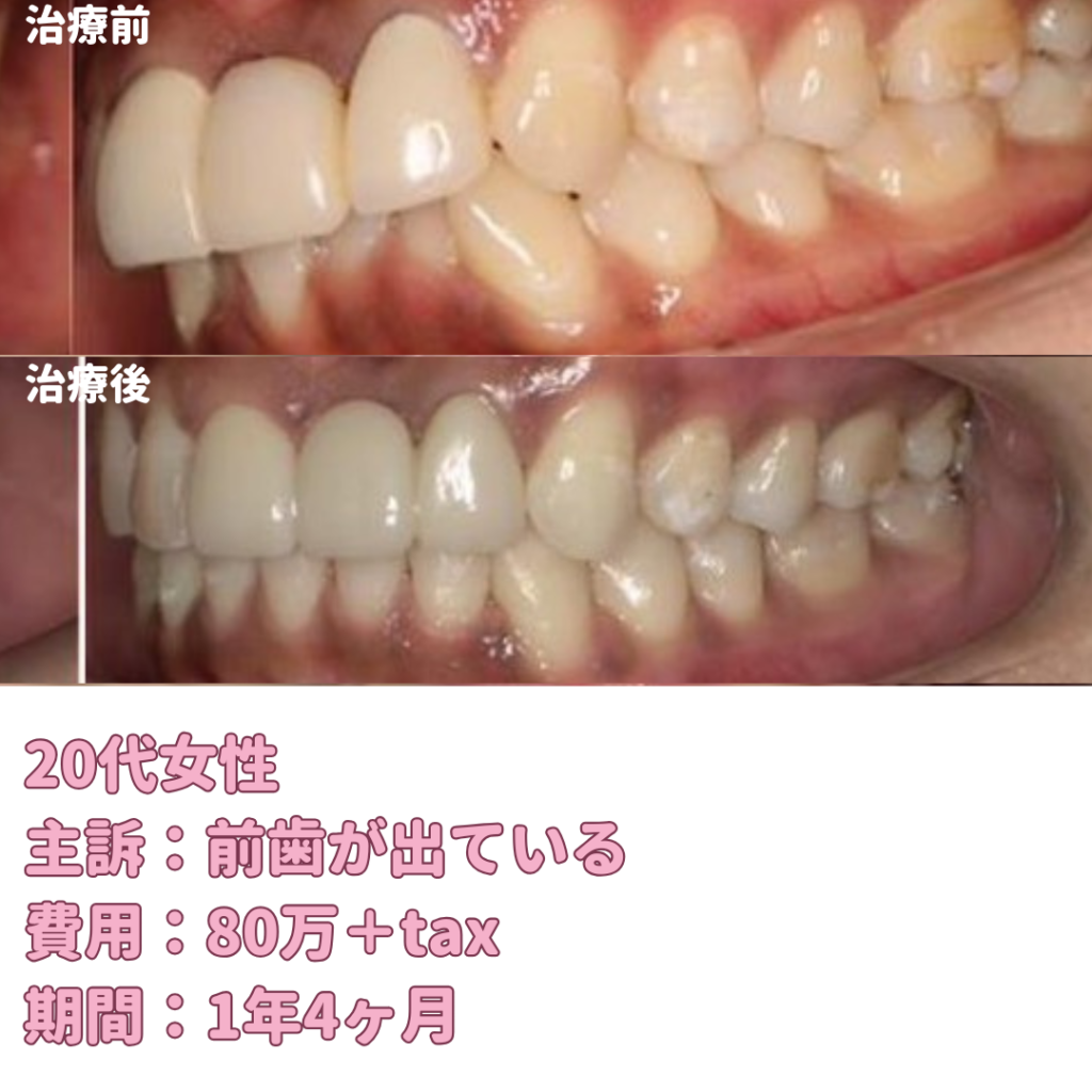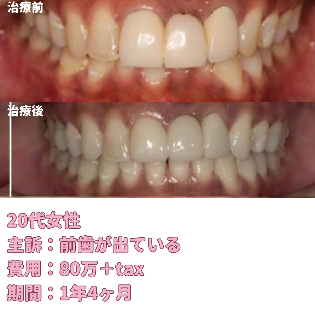 最終的に前歯の突出感もなくなり、綺麗になりました。
