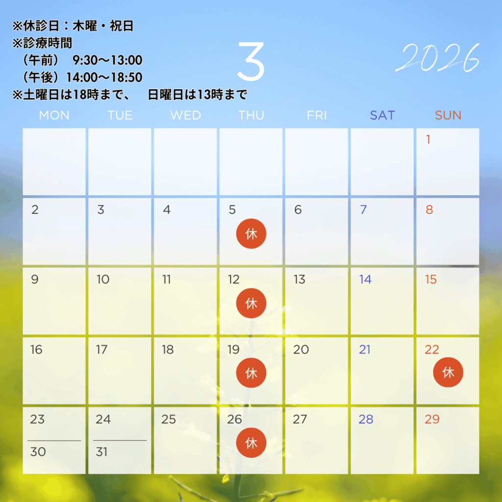 ※診療時間 (午前) 9:30~13:00(午後)14:00~18:50
