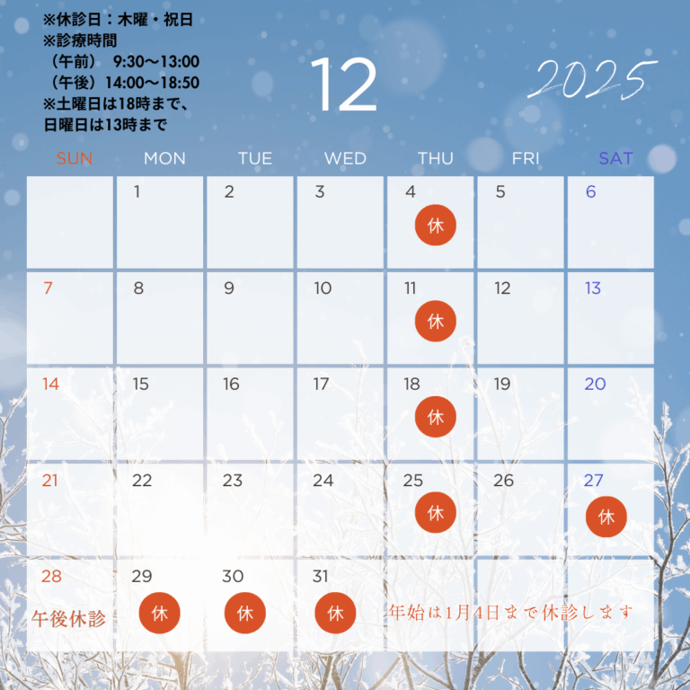 12月休診日のお知らせ